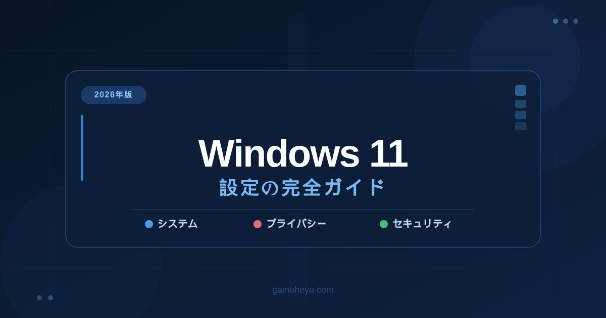 本ガイドでは、Windows 11の「システム」「プライバシー」「セキュリティ」の3領域にわたって、初心者でも実行できる設定方法を解説しました。