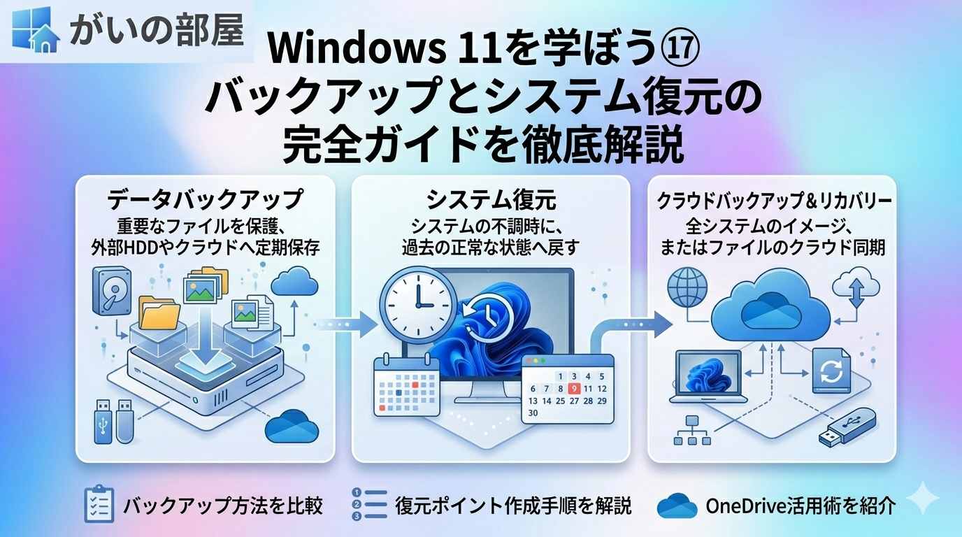 Windows 11を学ぼう⑰ バックアップとシステム復元の完全ガイドを徹底解説