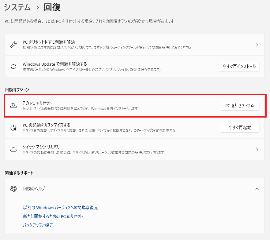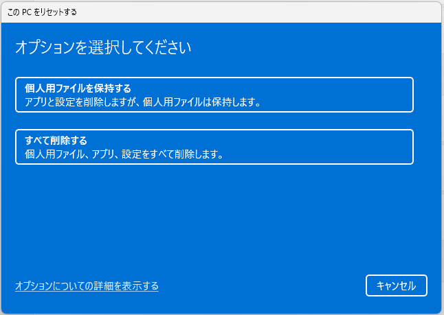 Windowsのリセットには大きく分けて2つの選択肢があります。