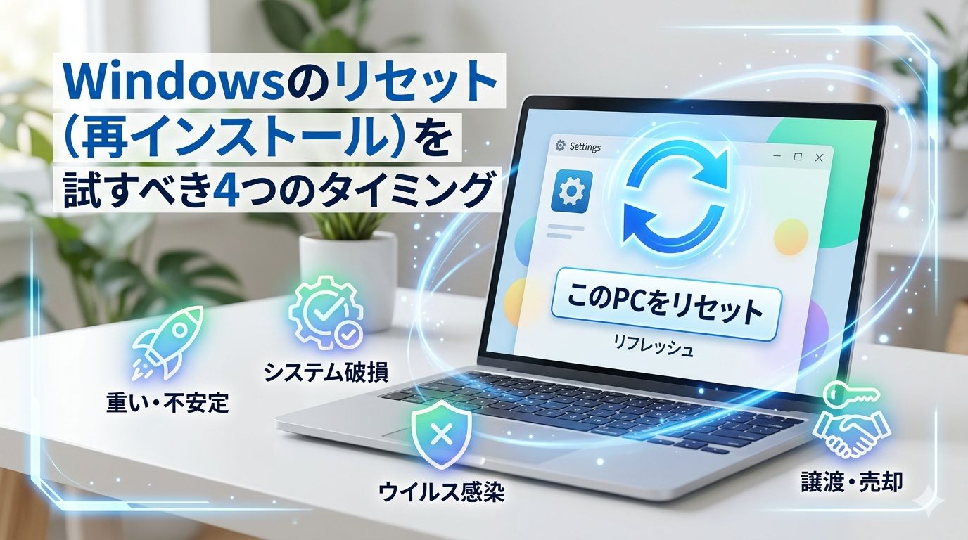 Windowsを使っていると、避けて通れないのが「動作の低下」や「予期せぬエラー」です。 設定の見直しやクリーンアップを試しても改善しないとき、最後に頼りになるのが「Windowsのリセット(再インストール)」。
